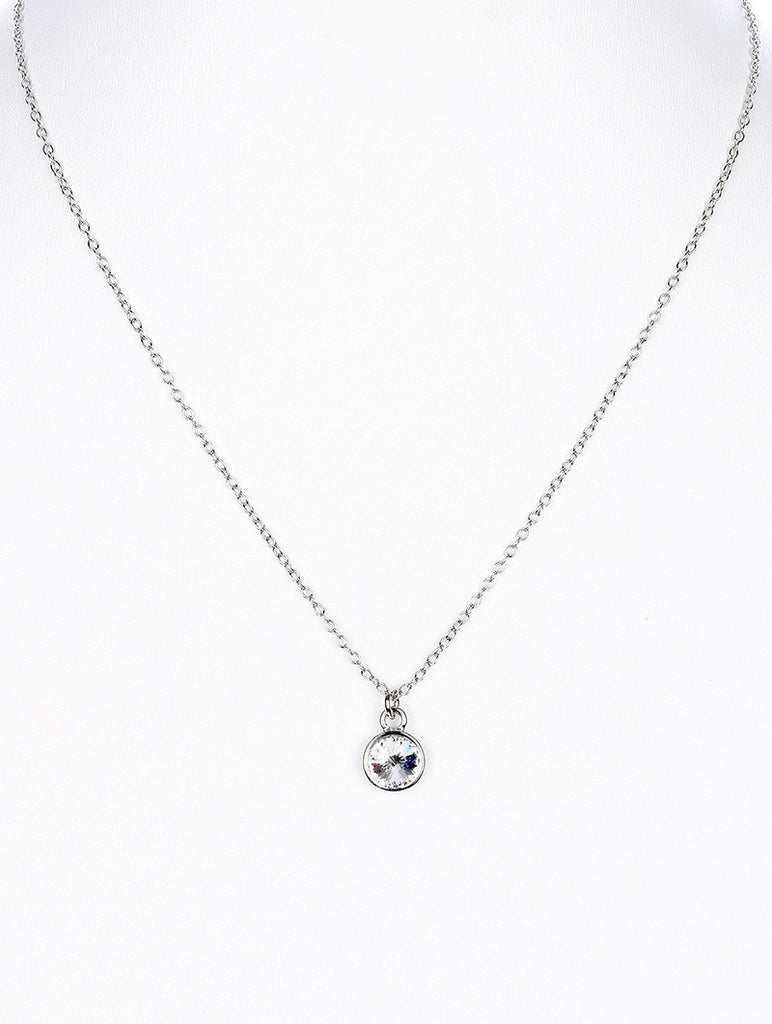 NECKLACE / GLASS STONE / PENDANT / LINK / CHAIN / 16 INCH LONG / 1 1/2 INCH DROP / NICKEL AND LEAD COMPLIANT