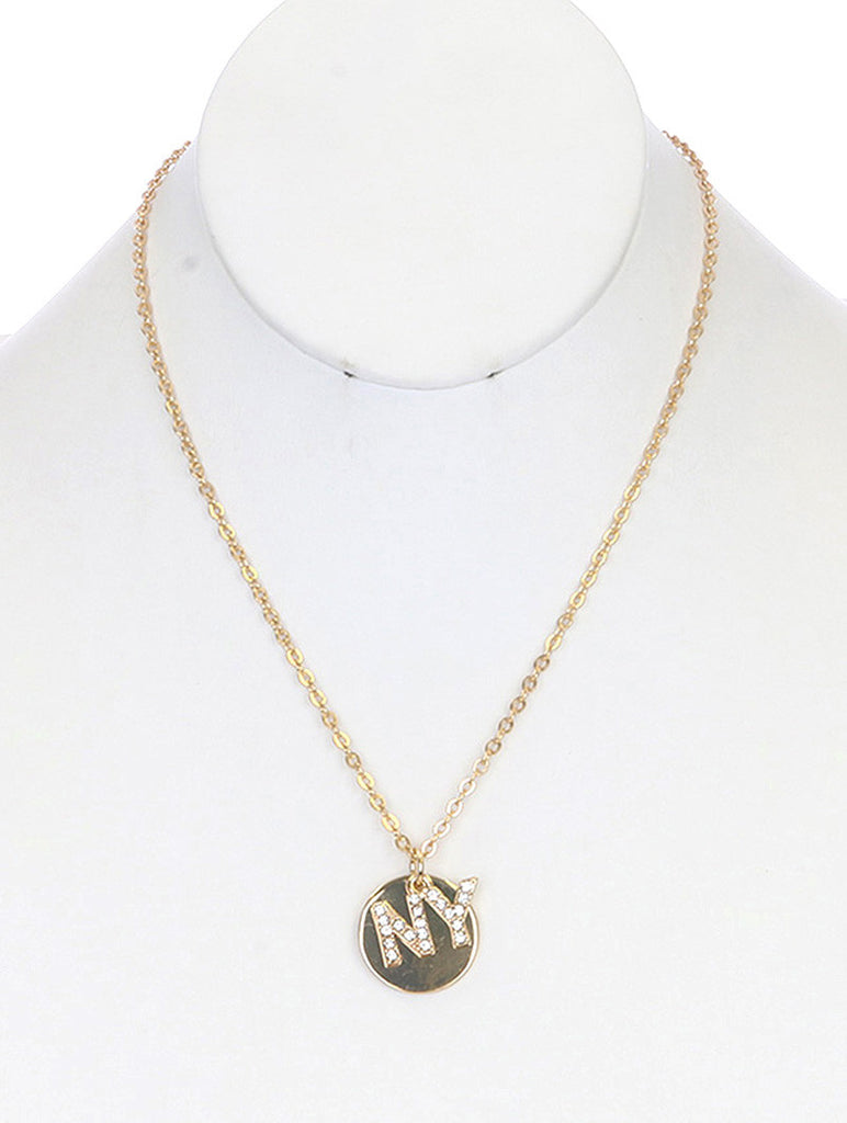 NECKLACE / NEWYORK / LINK / METALCHAIN / CRYSTAL STONE PAVED / 1 INCH DROP / 16 INCH LONG / NICKEL AND LEAD COMPLIANT