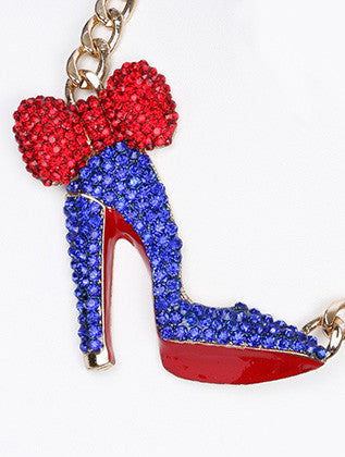 NECKLACE / METAL LINK CHAIN BIB / PAVE CRYSTAL STONE / CHUNKY / STILETTO / EPOXY COAT / 14 INCH LONG / 3 INCH DROP / NICKEL AND LEAD COMPLIANT