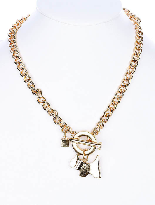 NECKLACE / DOG / METALCHAIN / TOGGLE / 2 INCH DROP / 18 INCH LONG / NICKEL AND LEAD COMPLIANT
