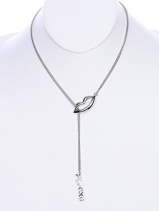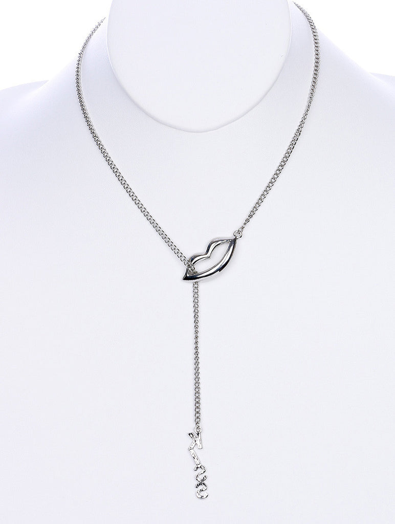 NECKLACE / PULL THROUGH METAL CHAIN / LIPS AND MESSAGE / KISS / 20 INCH LONG / 1 1/2 INCH DROP / NICKEL AND LEAD COMPLIANT
