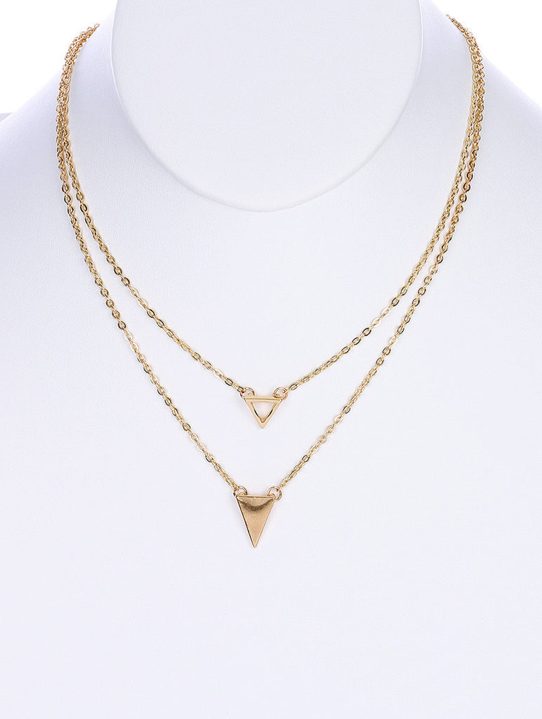 NECKLACE / DOUBLE LAYERED / METAL TRIANGULAR CHARM / CUTOUT / LINK / CHAIN / 18 INCH LONG / 1 1/2 INCH DROP / NICKEL AND LEAD COMPLIANT