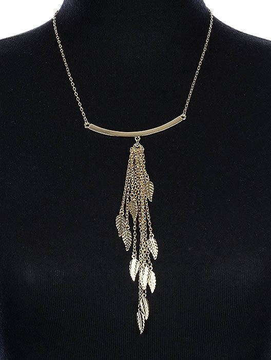NECKLACE / METAL ROD / LEAF CHAIN FRINGE / LINK / 16 INCH LONG / 6 INCH DROP / NICKEL AND LEAD COMPLIANT