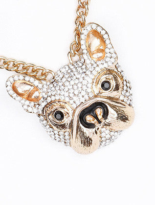 NECKLACE / PAVE CRYSTAL STONE / CHUNKY METAL BIB / MESSAGE / PARIS / LINK / CURB CHAIN / 16 INCH LONG / 3 INCH DROP / NICKEL AND LEAD COMPLIANT