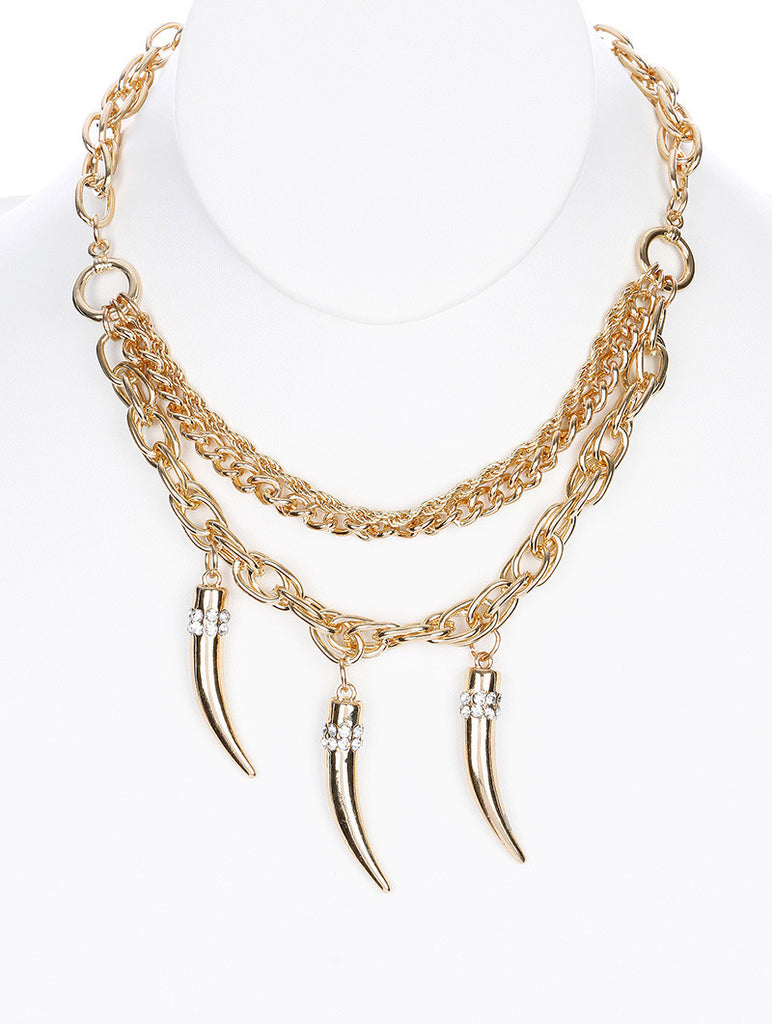 NECKLACE / ELEPHANT TUSK CHARM / THREE LAYER CHAIN / METAL / PAVE CRYSTAL STONE / LINK / CHAIN / 16 INCH LONG / 3 INCH DROP / NICKEL AND LEAD COMPLIANT