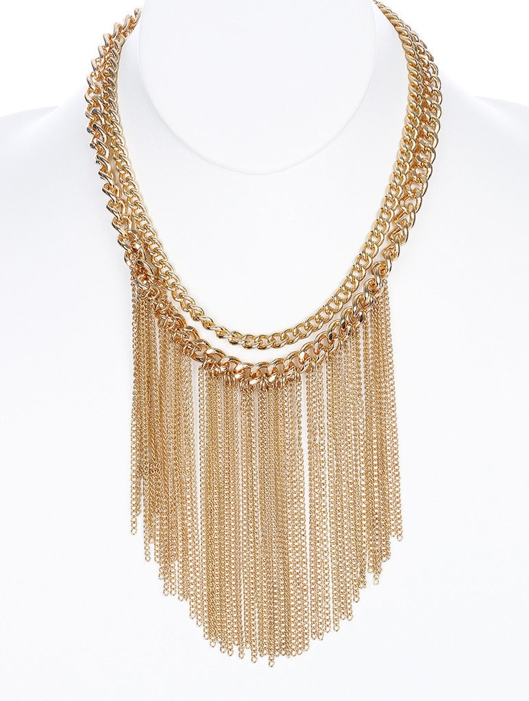 NECKLACE / DOUBLE LAYER / CHAIN FRINGE / LINK / 14 INCH LONG / 5 INCH DROP / NICKEL AND LEAD COMPLIANT