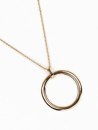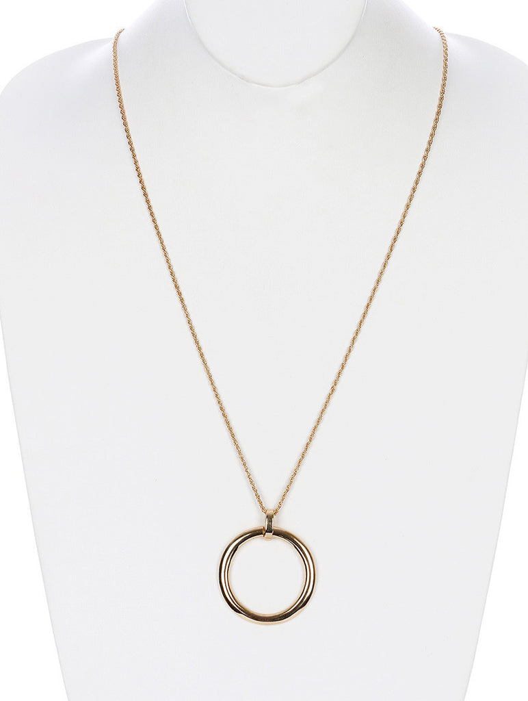 NECKLACE / METAL RING / PENDANT / LINK / ROPE CHAIN / 34 INCH LONG / 2 INCH DROP / NICKEL AND LEAD COMPLIANT