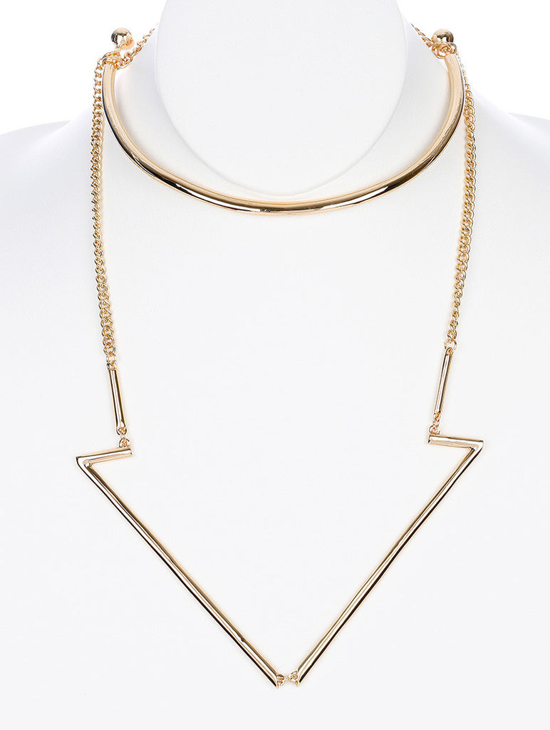 NECKLACE / DOUBLE LAYER / METAL CHOKER / METAL ROD / ARROW SHAPE / LINK / CHAIN / 5 INCH DIAMETER / 7 INCH DROP / NICKEL AND LEAD COMPLIANT