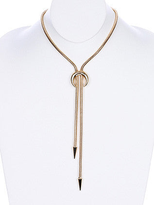 NECKLACE / BOLO STYLE / SNAKE CHAIN / METAL SPIKE / CRESCENT MOON / 16 INCH LONG / 7 1/2 INCH DROP / NICKEL AND LEAD COMPLIANT