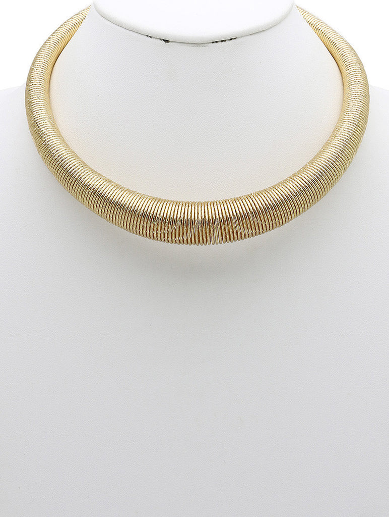 NECKLACE / TEXTURED WIRE COIL / CHOKER / 5 INCH DIAMETER / 3/4 INCH DROP / NICKEL AND LEAD COMPLIANT