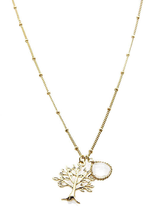 NECKLACE / TREE OF LIFE / HOMAICA STONE CHARM / TEXTURED / TWISTED METAL / LINK / CHAIN / 16 INCH LONG / 1 INCH DROP / NICKEL AND LEAD COMPLIANT