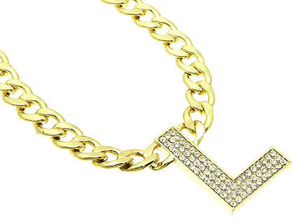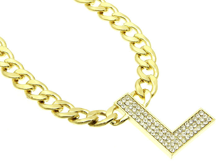 NECKLACE / LINK / METALCHAIN / CRYSTAL STONE PAVED / LETTER L / 1 3/4 INCH DROP / 18 INCH LONG / NICKEL AND LEAD COMPLIANT