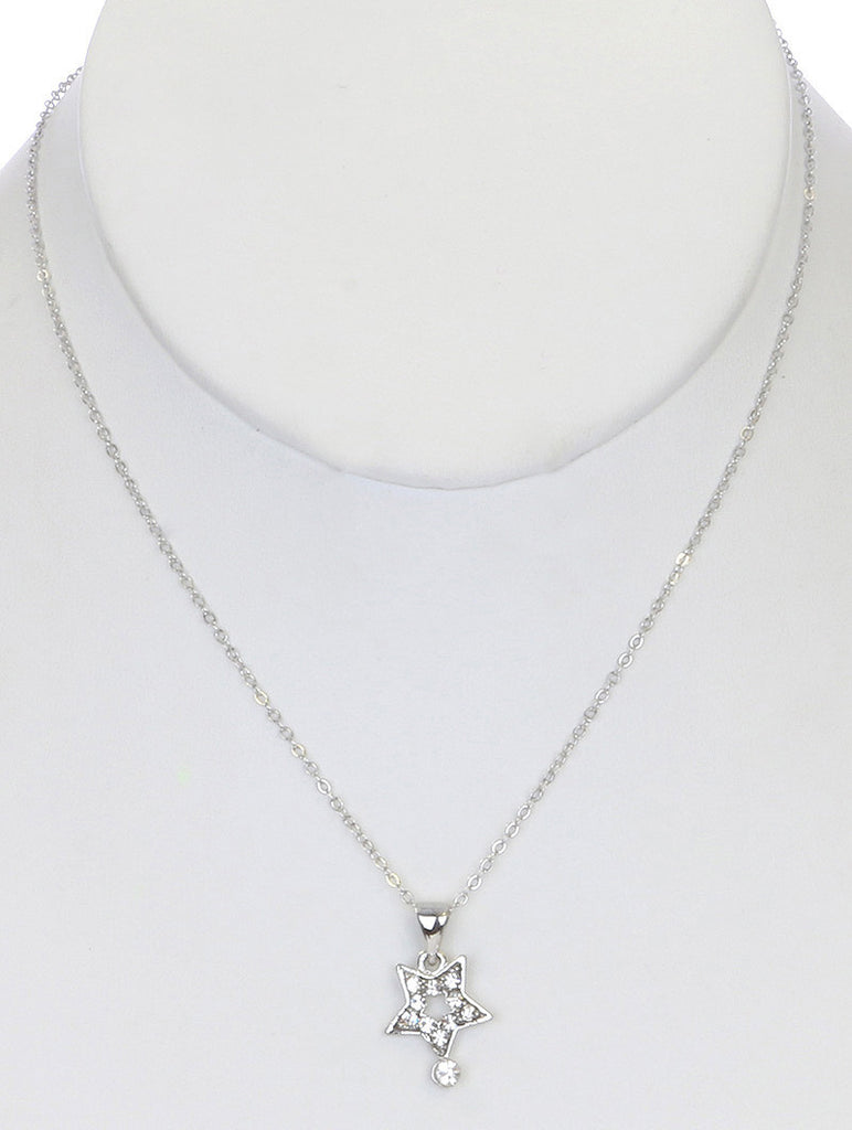 NECKLACE / STAR / LINK / METAL / CRYSTAL STONE PAVED / 3/4 INCH DROP / 16 INCH LONG / NICKEL AND LEAD COMPLIANT