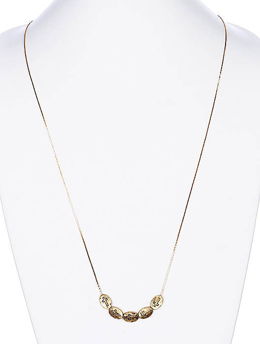 NECKLACE / AGED FINISH METAL / CROSS ETCHED BEAD / HAMMERED / CHAIN / 30 INCH LONG / 1/4 INCH DROP / NICKEL AND LEAD COMPLIANT