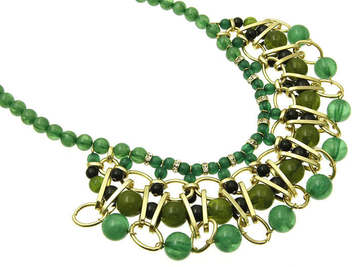 NECKLACE / LUCITE BEAD / LINK / METAL / CRYSTAL STONE / 1 3/4 INCH DROP / 16 INCH LONG / NICKEL AND LEAD COMPLIANT