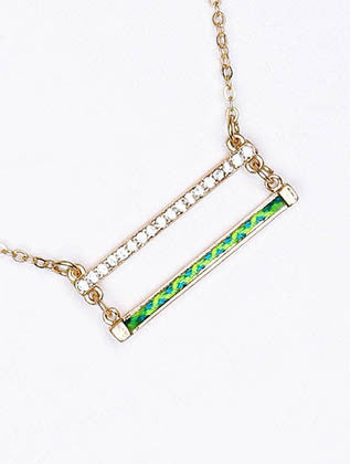 NECKLACE / CRYSTAL STONE / METAL CHAIN / KNITTED CORD / 1/2 INCH DROP / 16 INCH LONG / NICKEL AND LEAD COMPLIANT