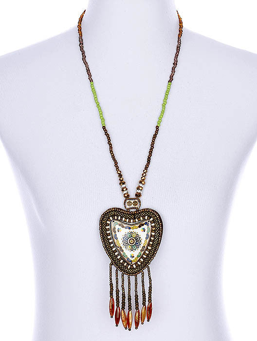 NECKLACE / MICRO BEAD / LUCITE BEAD / EPOXY / FAUX LEATHER / CRYSTAL BEAD / BEAD CHAIN / 6 1/4 INCH DROP / 28 INCH LONG / NICKEL AND LEAD COMPLIANT