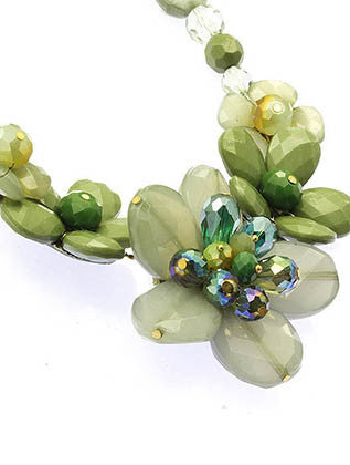 NECKLACE / FLORAL / FACETED AURORA BEAD / LUCITE BEAD / MATTE FINISH / METAL CHAIN / 16 INCH LONG / 2 1/2 INCH DROP / NICKEL AND LEAD COMPLIANT