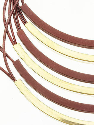 NECKLACE / MULTI LAYER / BIB / METAL / LUCITE / MULTI CORD / 16 INCH LONG / 4 INCH DROP / NICKEL AND LEAD COMPLIANT