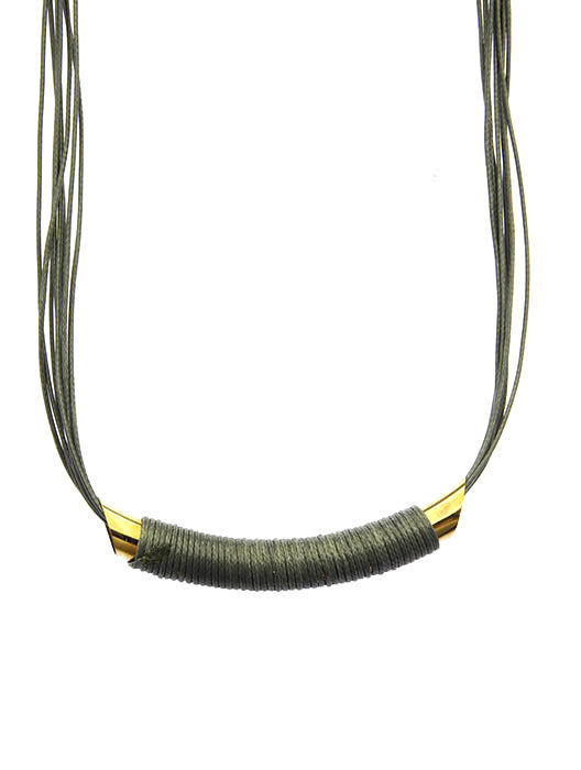 NECKLACE / MULTI STRAND / BIB / METAL BEAD / WRAPAROUND CORD / MULTI CORD / 16 INCH LONG / 1/2 INCH DROP / NICKEL AND LEAD COMPLIANT
