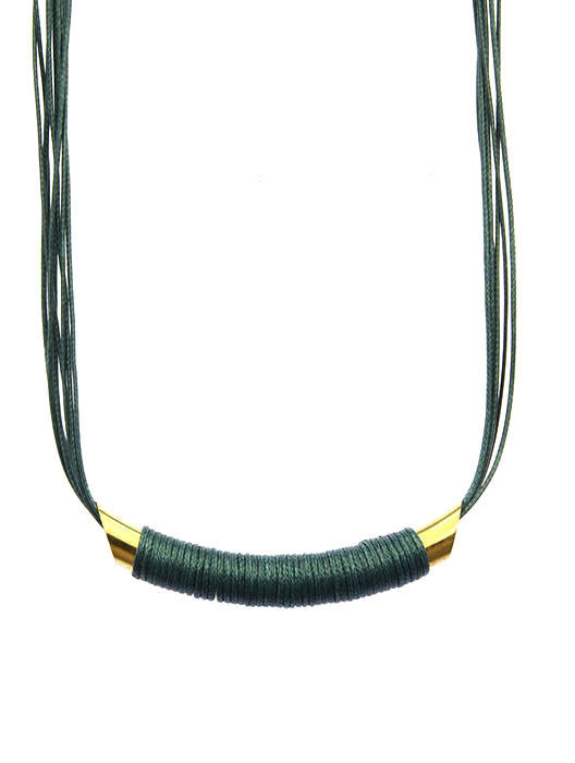 NECKLACE / MULTI STRAND / BIB / METAL BEAD / WRAPAROUND CORD / MULTI CORD / 16 INCH LONG / 1/2 INCH DROP / NICKEL AND LEAD COMPLIANT