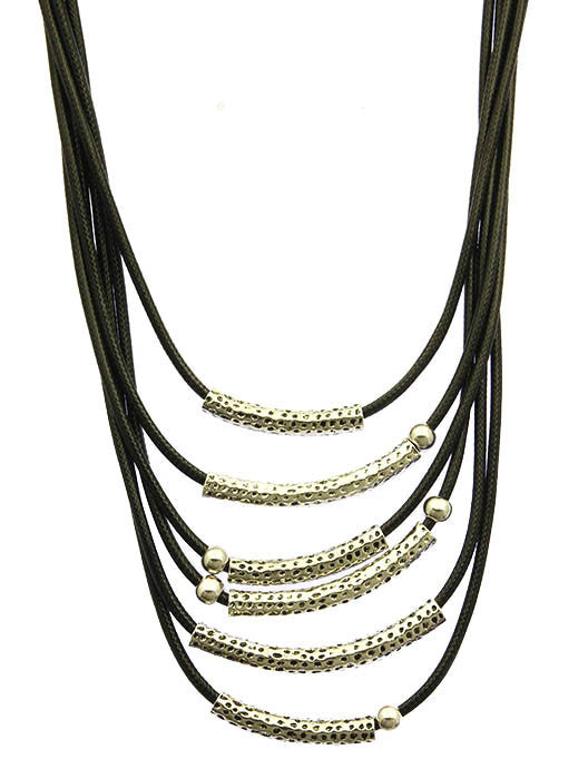 NECKLACE / MULTI LAYER / BIB / METAL BEAD / TEXTURED METAL / / MULTI CORD / 20 INCH LONG / 3 INCH DROP / NICKEL AND LEAD COMPLIANT