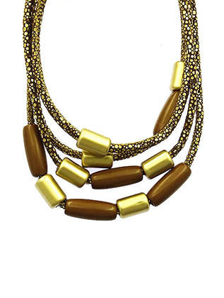 NECKLACE / MULTI LAYER / BIB / LUCITE / METALLIC FINISH / MULTI CORD / 16 INCH LONG / 2 INCH DROP / NICKEL AND LEAD COMPLIANT